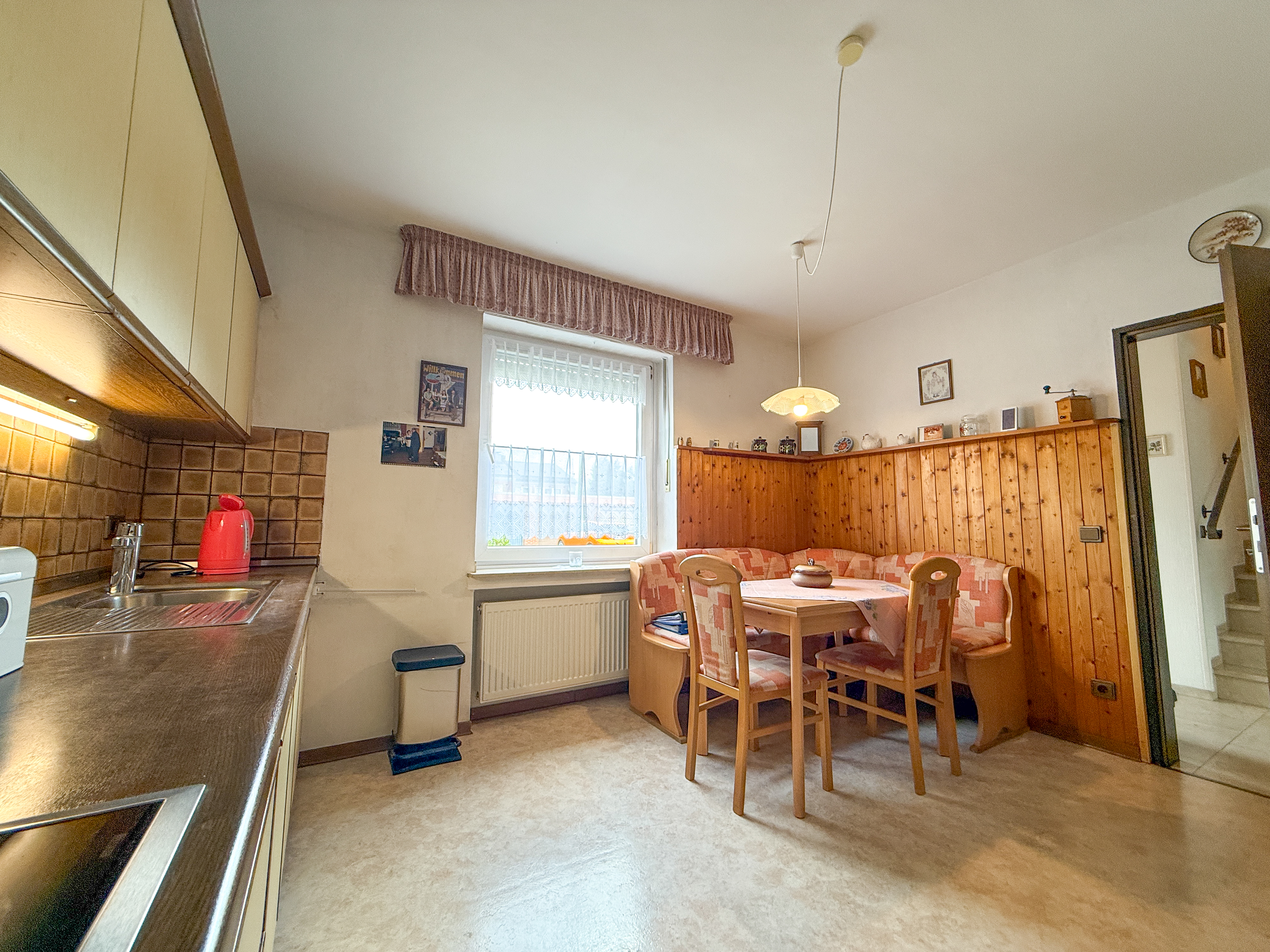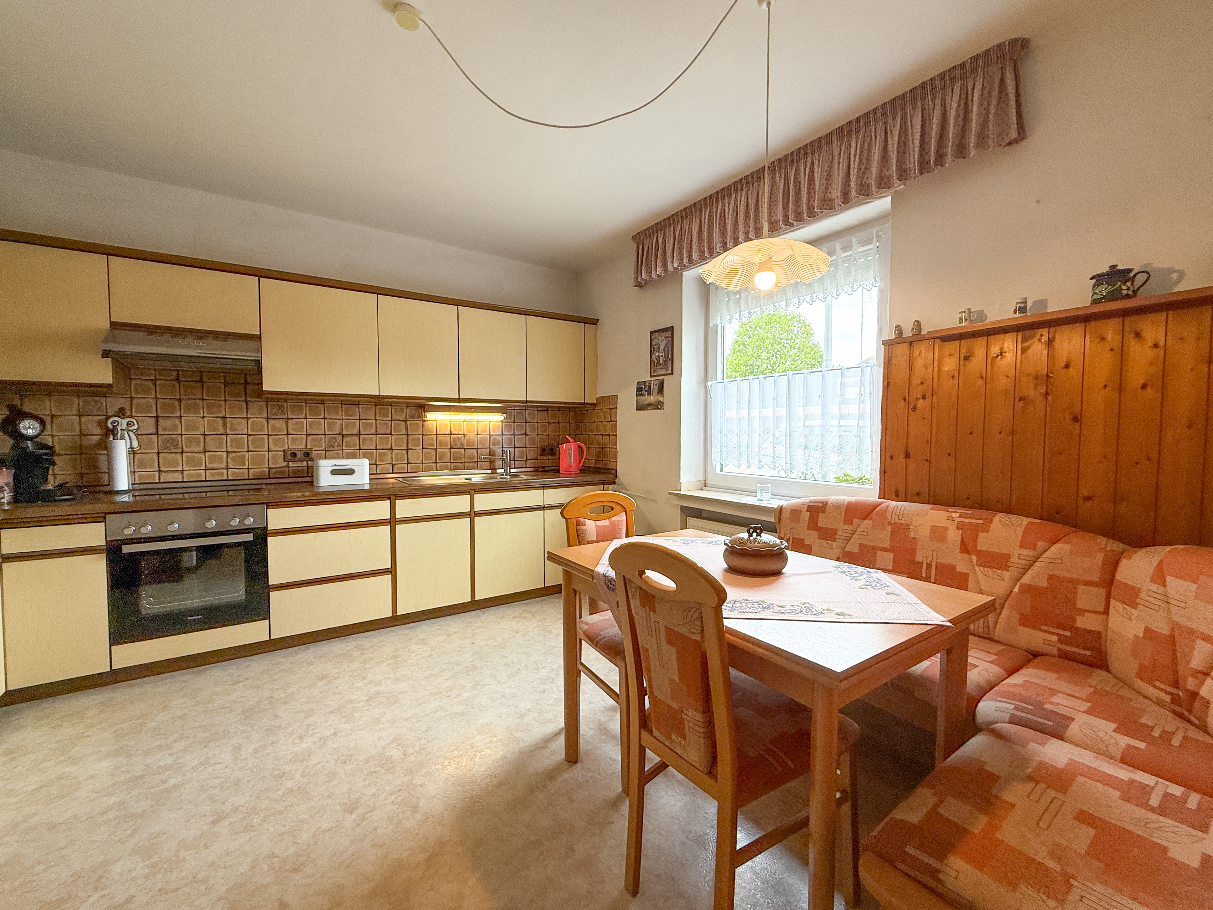 Großzügige Küche mit Abstellraum und Platz für Sitzecke