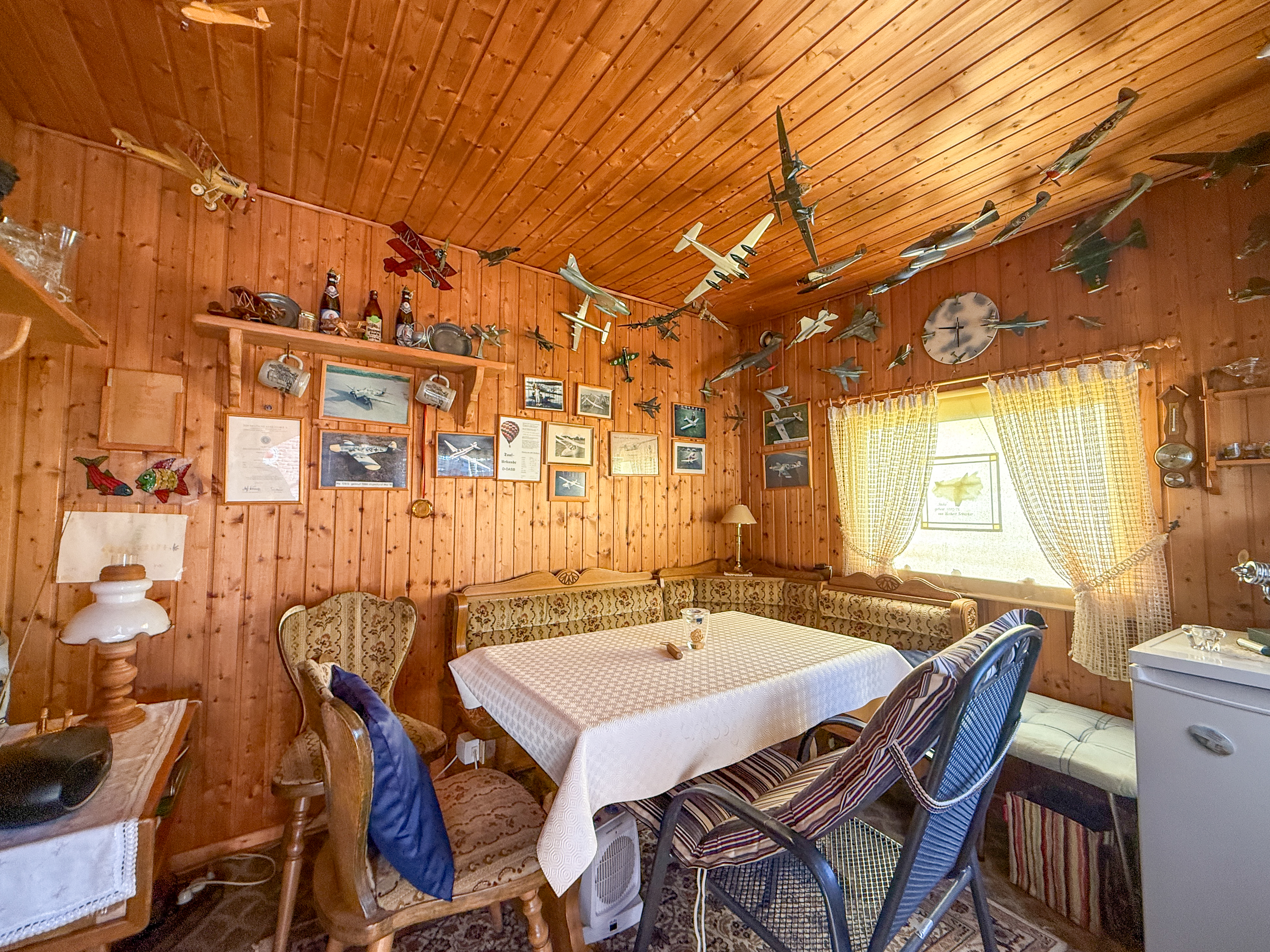 Ein kleiner, abgeschlossener Raum an der Terrasse wurde bisher als gemütlicher Rückzugsort genutzt und lässt sich flexibel als Hobbyraum oder Leseecke gestalten.