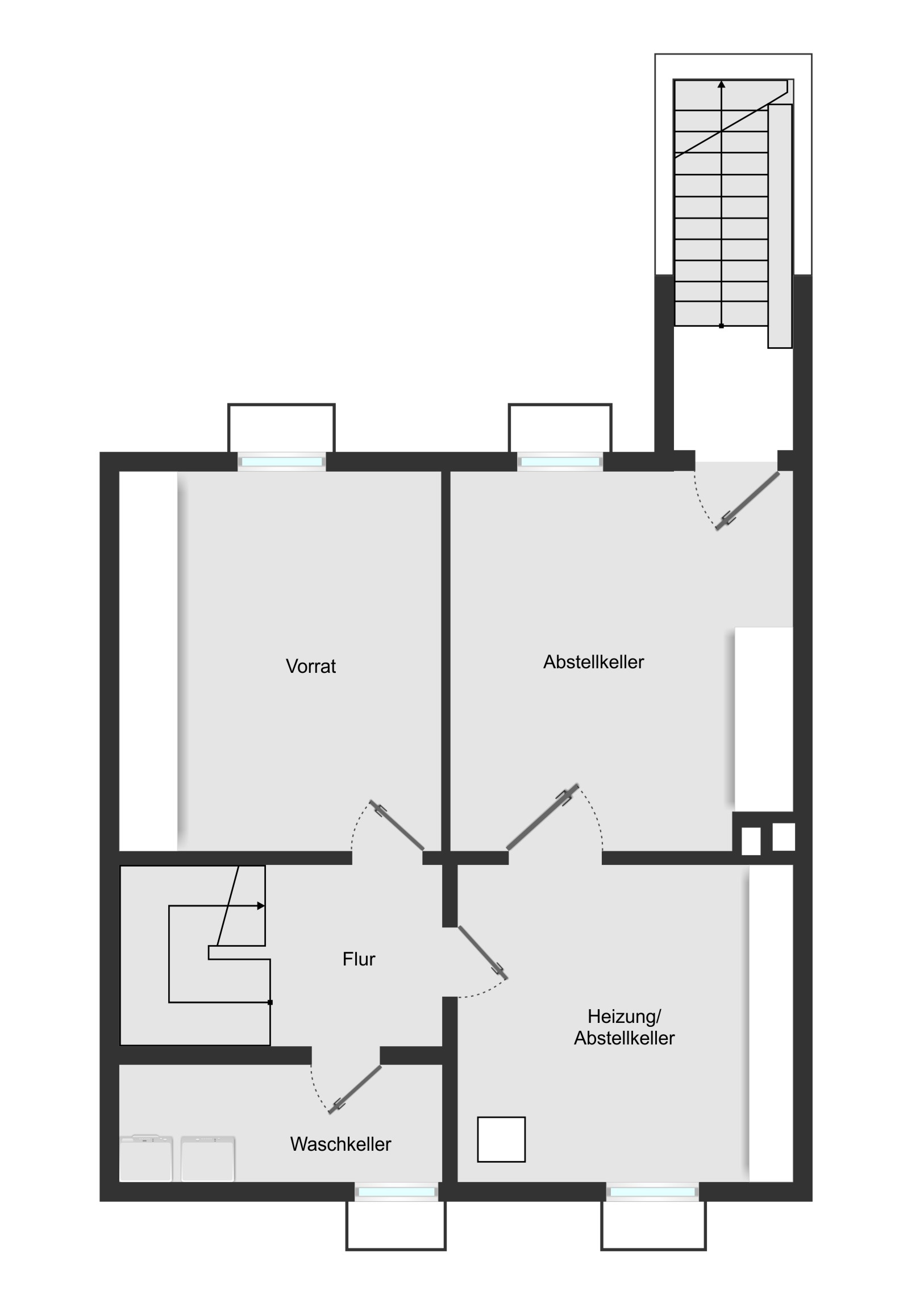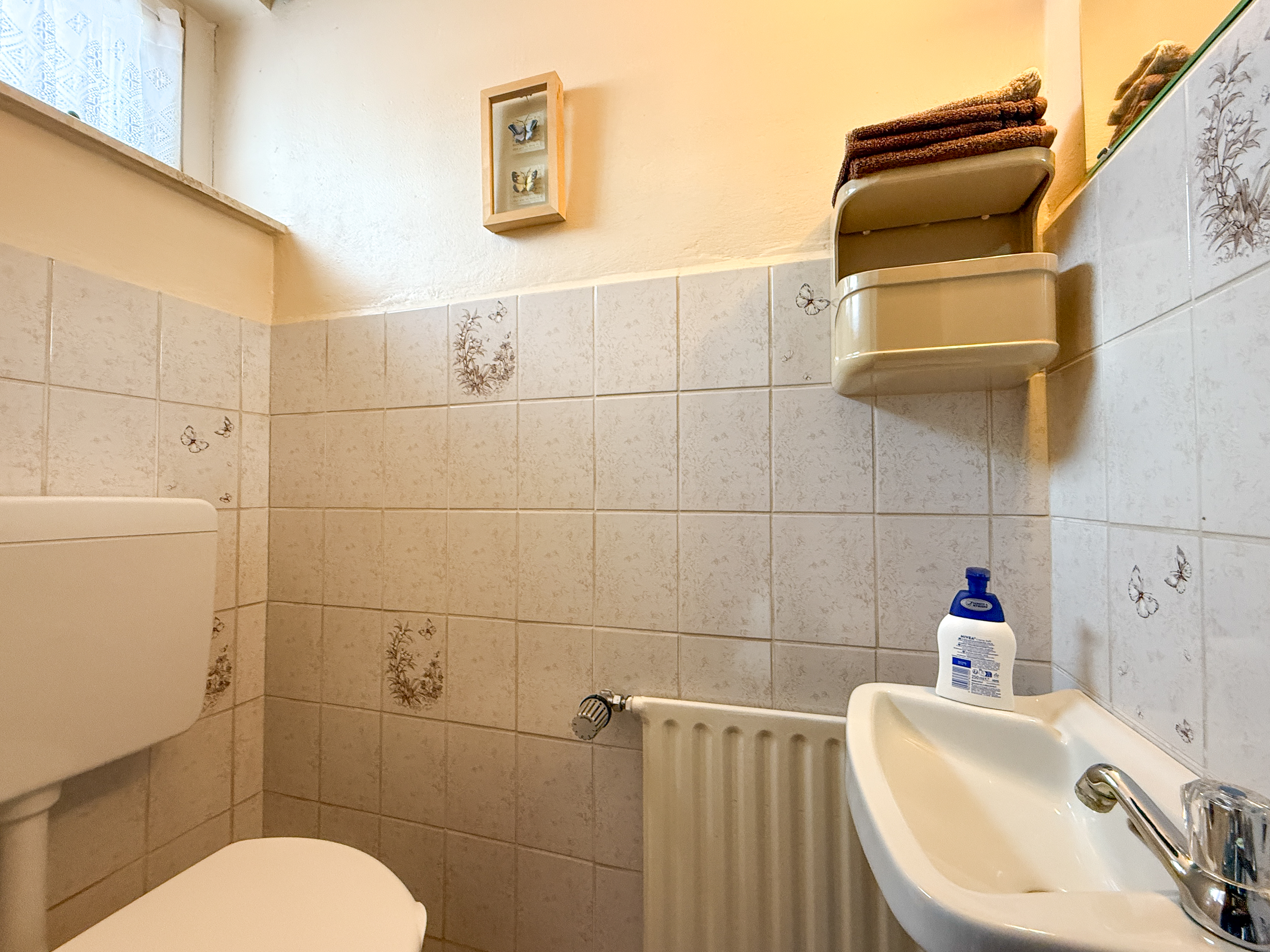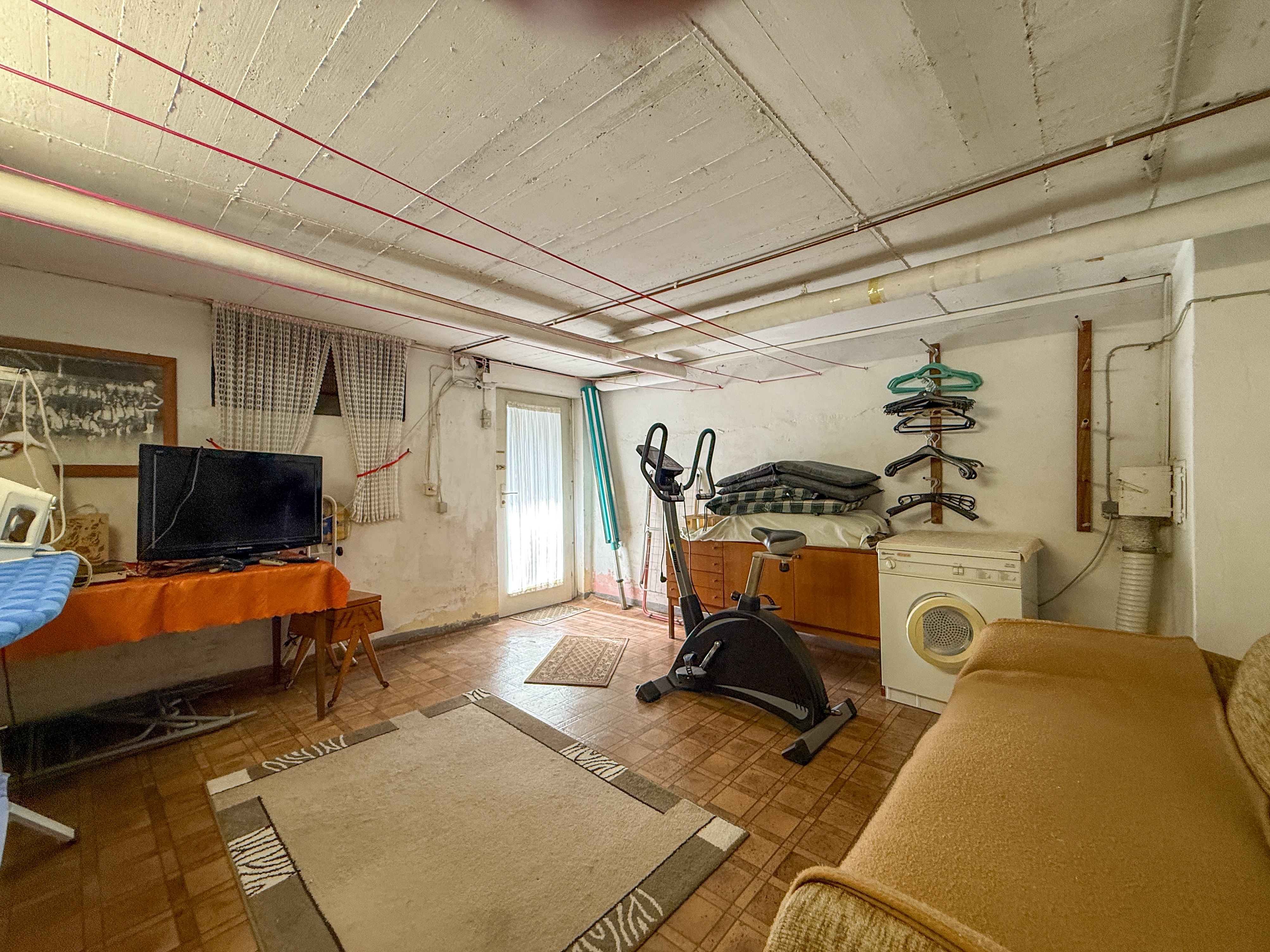 Im Kellergeschoss stehen mehrere Abstellräume sowie ein Waschkeller mit praktischem Außenzugang in den Garten zur Verfügung. Eine Garage, direkt gegenüber dem Haus gelegen, ergänzt das Gesamtangebot.