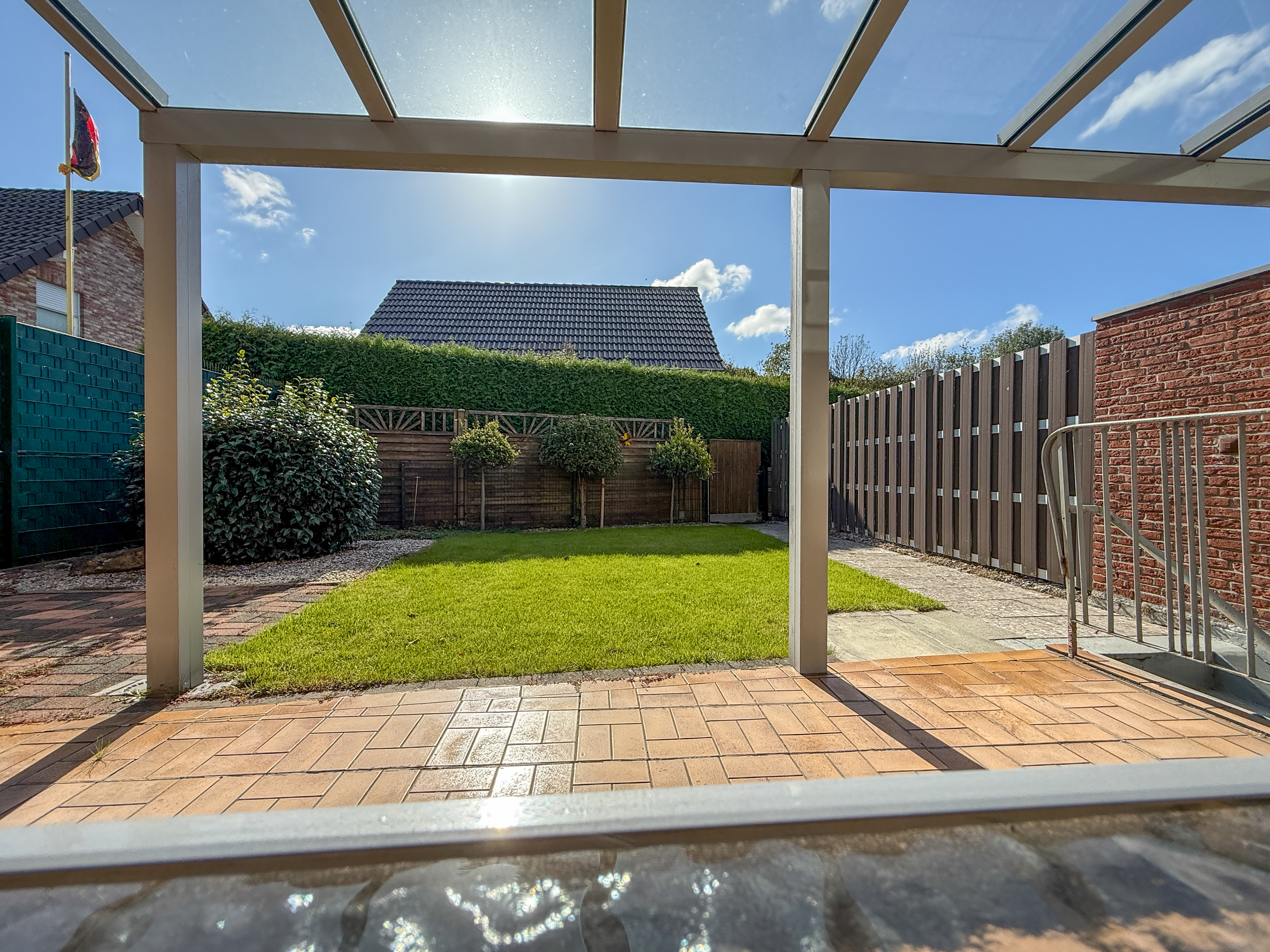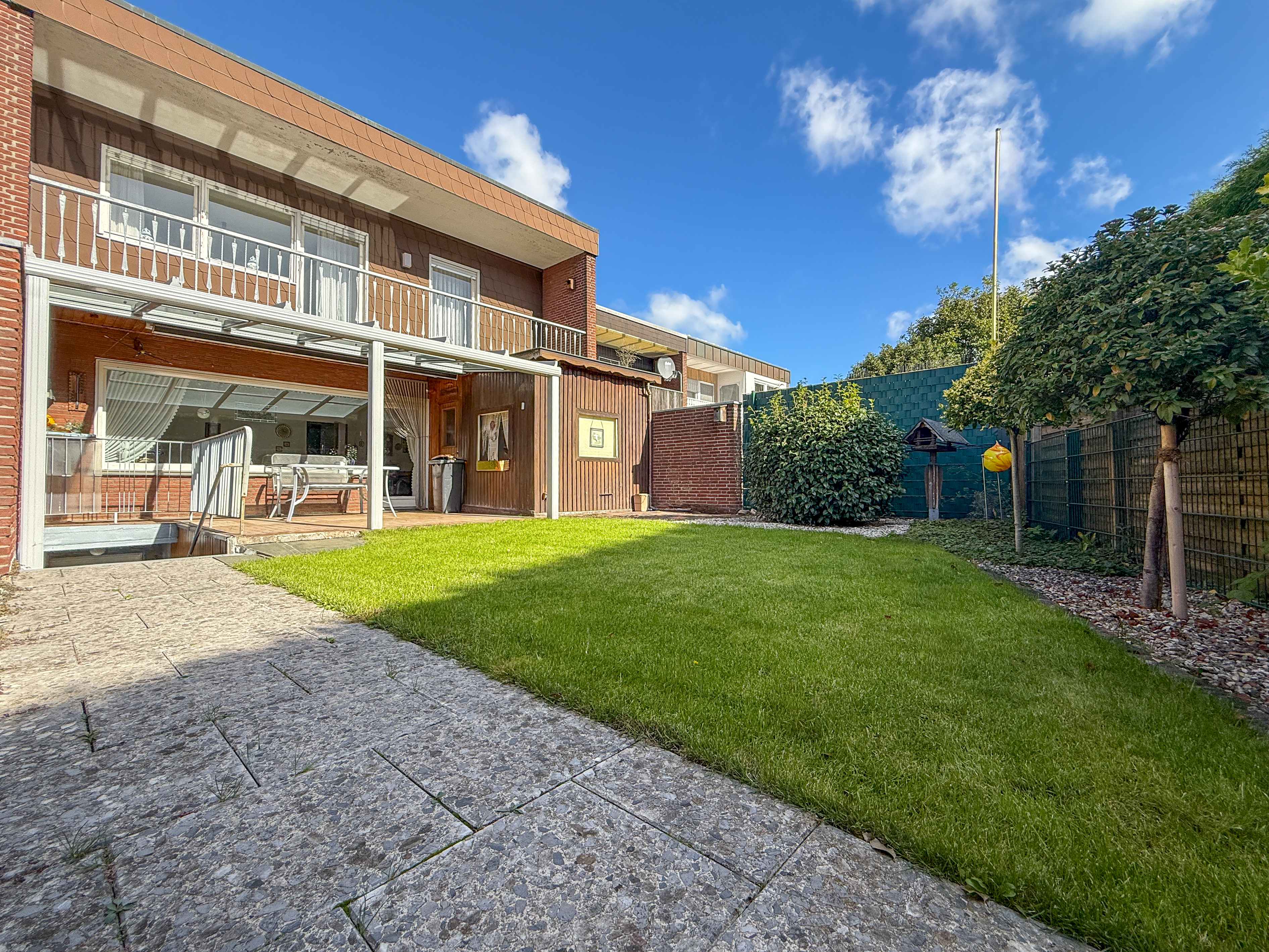 Überdachte Terrasse und gepflegter Garten mit rückwärtigem Zugang